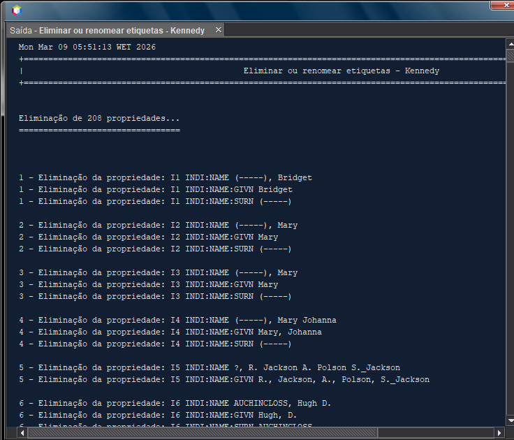 Esta função permite eliminar etiquetas Gedcom da sua genealogia.