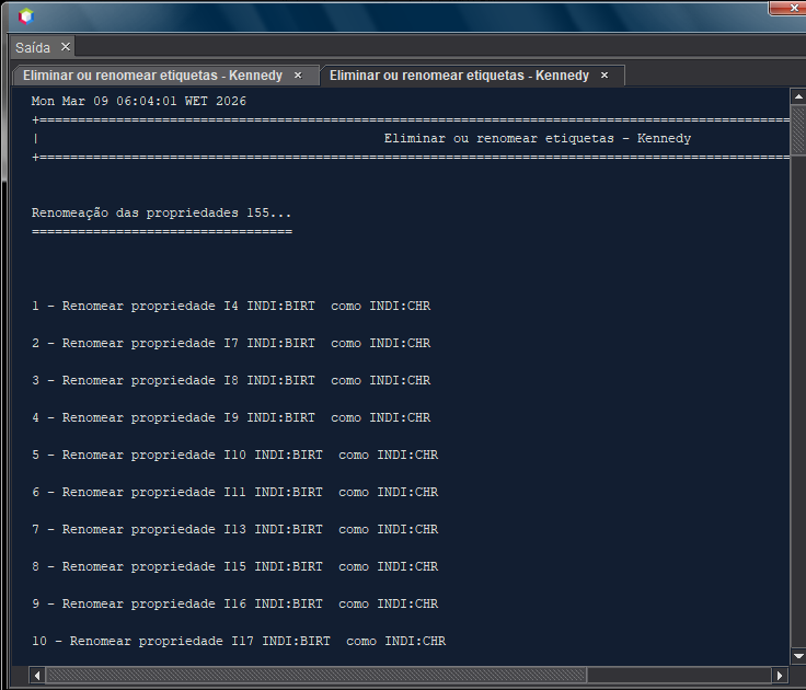 Na janela/separador Saída poderá ver em pormenor o que foi renomeado.