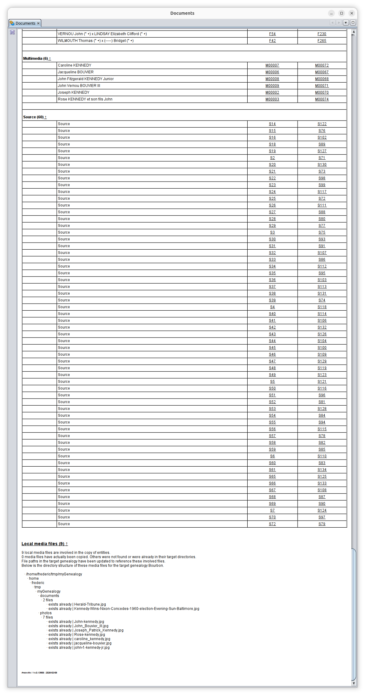 Upon completion, Ancestris will display a report document with the summary and details of all the work that has been done. It lets you know exactly what was done and you can revisit each entity that was copied and where it was copied to.