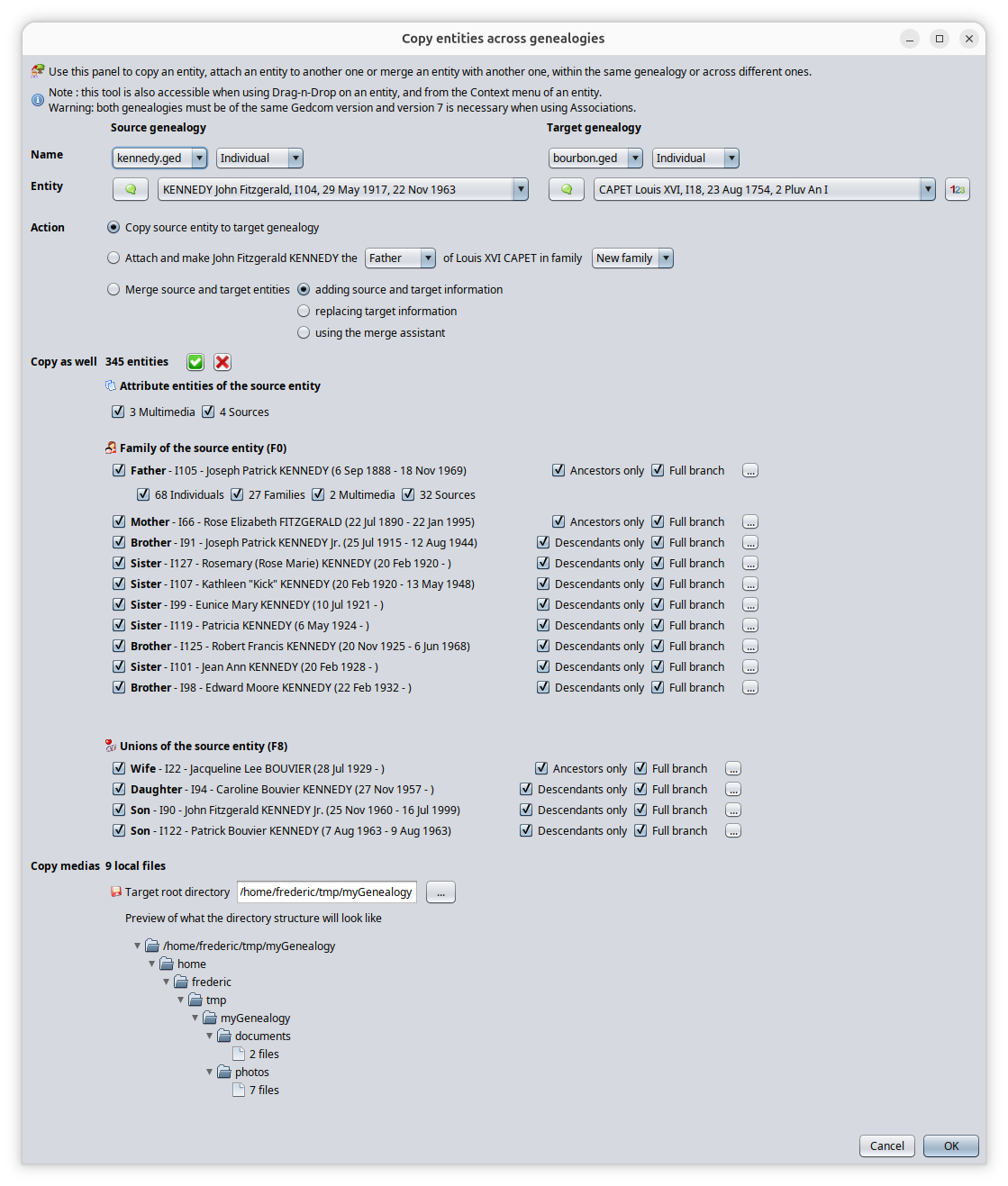 By pressing OK, Ancestris will perform the copy of the entities, of the media files, and update the media links. If you asked for the attachment, Ancestris will do it as well.