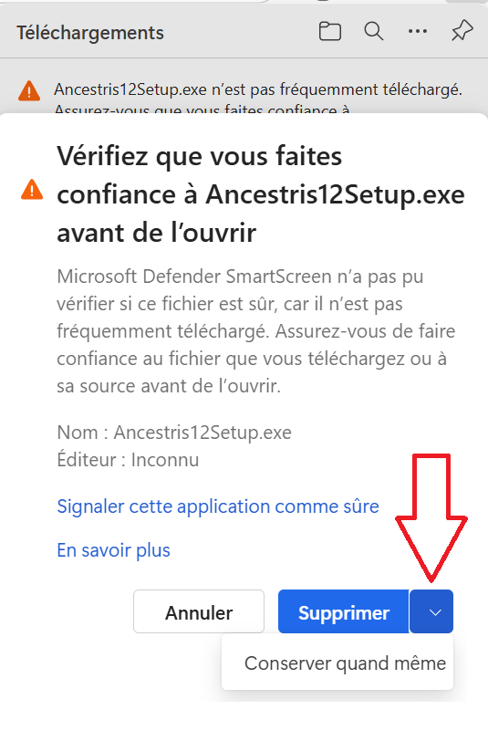 Si votre navigateur vous empêche le téléchargement, vous pouvez passer outre en suivant la procédure en bas de page