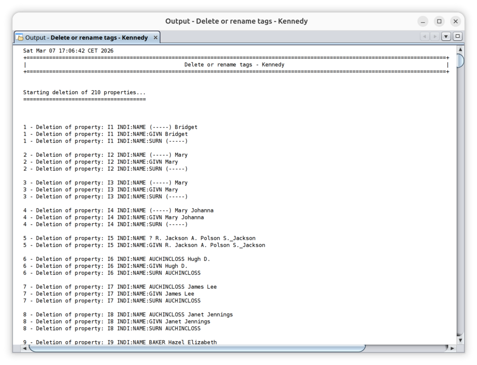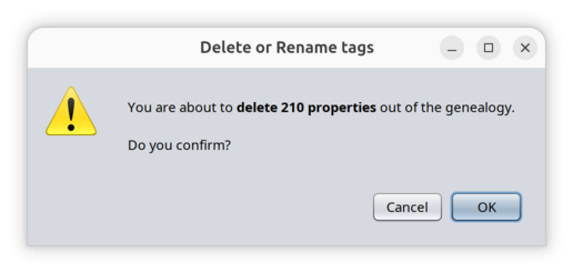 - Delete properties from you genealogy, such as empty or invalid tags for instance.