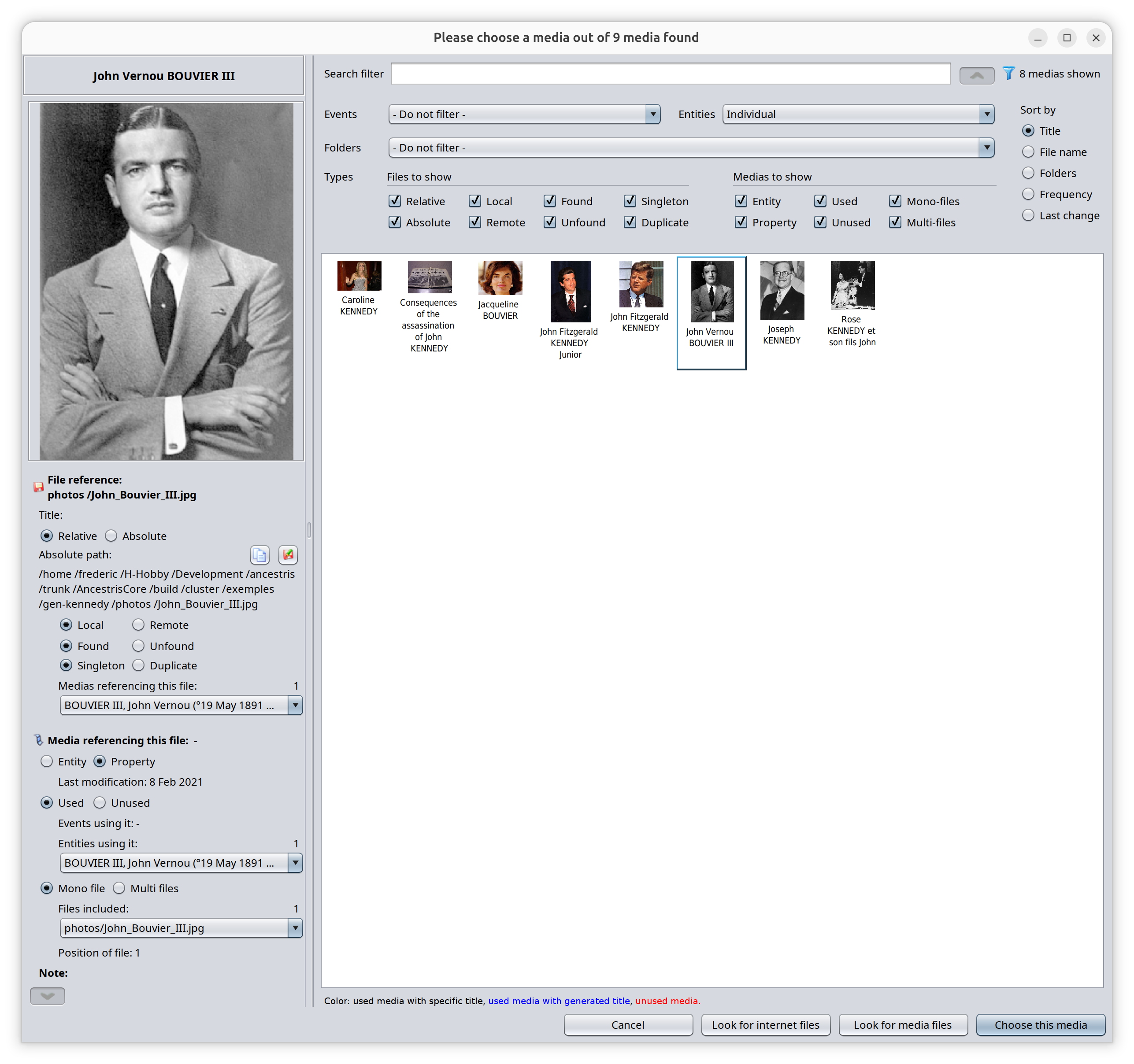The filters help you quickly clean your genealogy from unwanted media files.